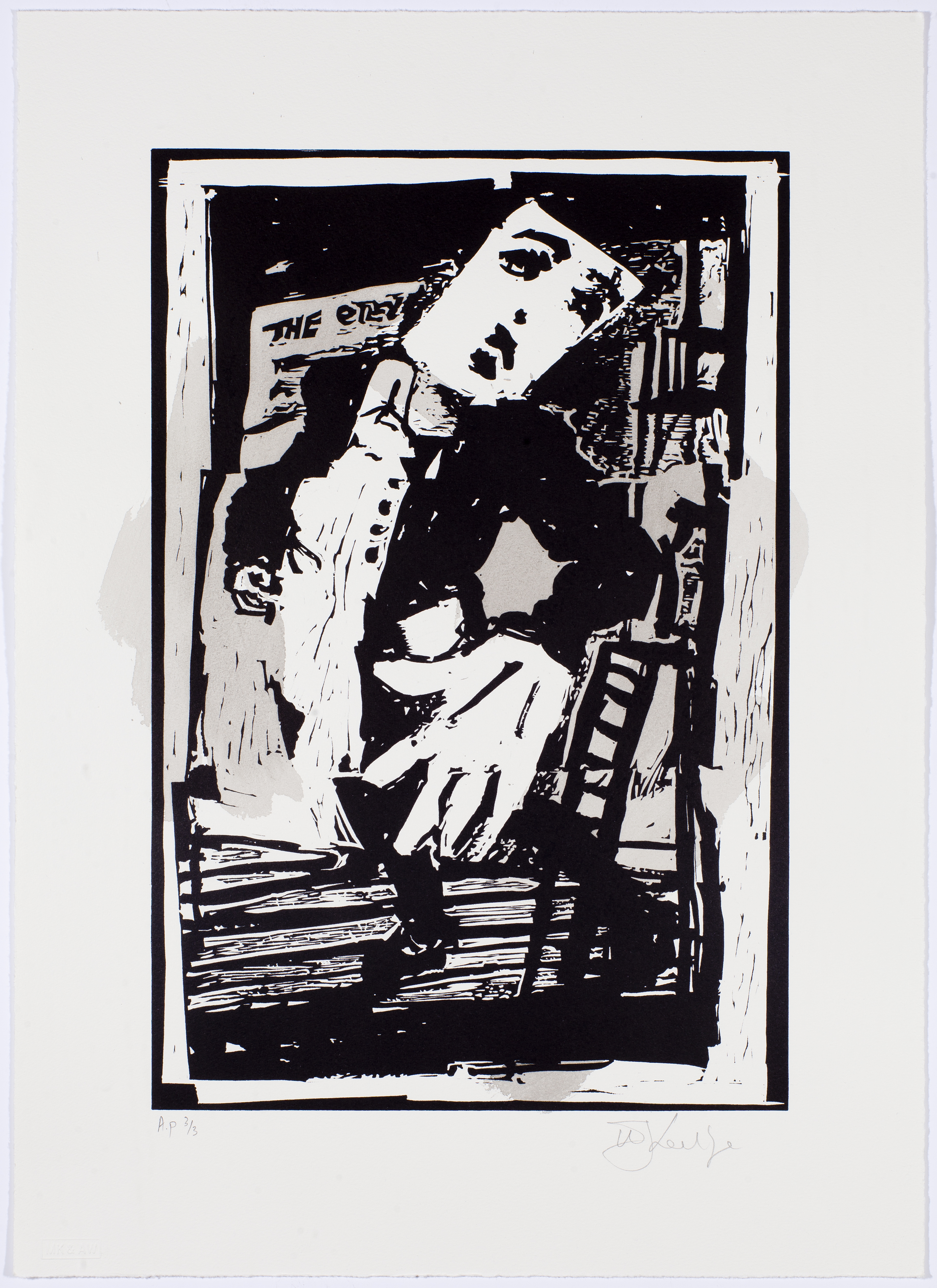 Ink is the primary medium of the production. Sometimes, ink drawings translated into woodcuts or linocuts but essentially the vehemence of a black brushstroke trying to find some equivalent visually to the violence of the opera in the marks and the way they are used. It is almost as if ink becomes the black blood that is spilt throughout the production.