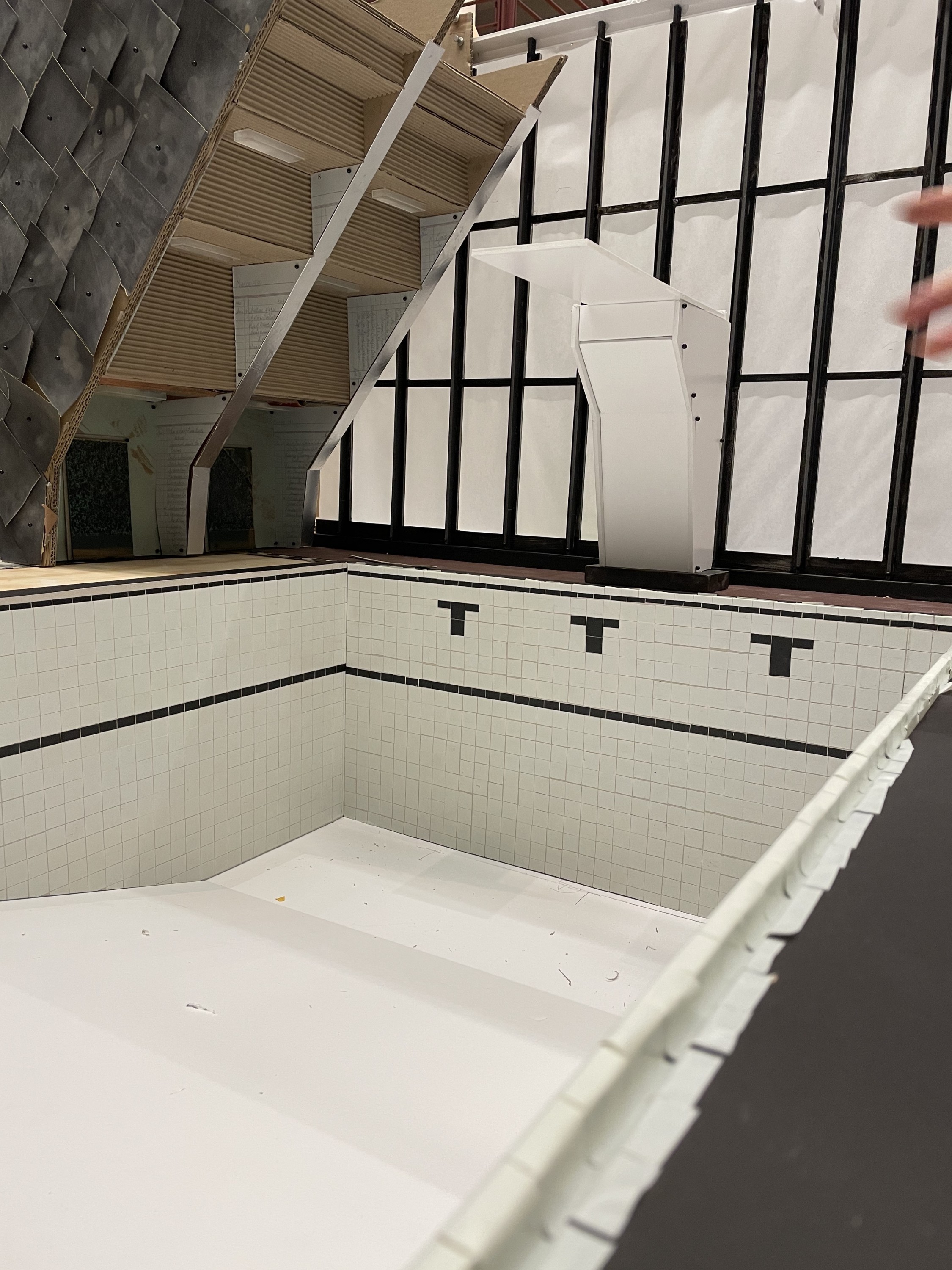 The film is set inside what appears to be an abandoned Soviet museum, which in fact is made of cardboard, on the table in the artist’s studio (at times there are fragments of the studio visible). Using a miniature camera, we move through the different halls of the museum, which also include a community theatre hall, a public swimming pool, a quarry at the side of the main halls of the museum. A corridor of vitrines holding stuffed historical figures.